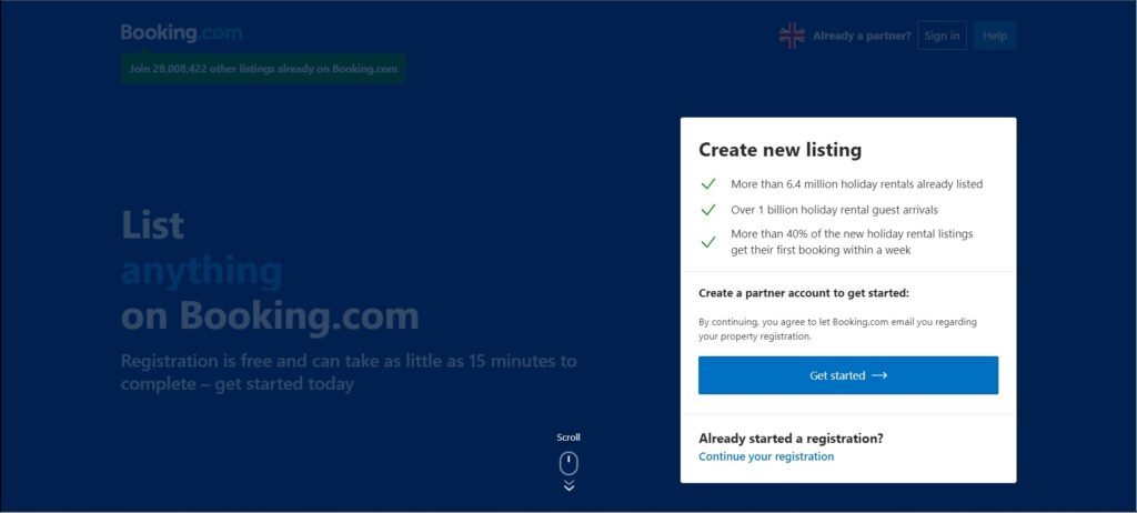 To take bookings through Booking.com, you’ll first need to register your property with Booking.com. The process is largely self-explanatory, though it is slightly more involved than, say, creating a social media account, as real money, real properties and real businesses are involved.