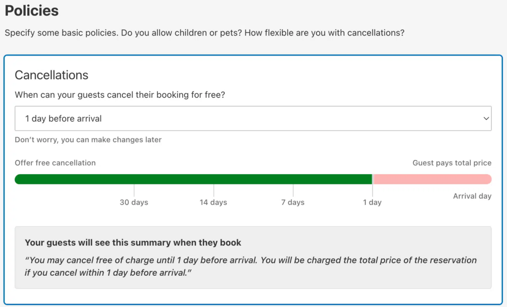 Your policies should be reasonable while reflecting the expectations of your ideal guest. The most important policies should take pride of place on your Booking.com profile to ensure guests are aware of them before they book.