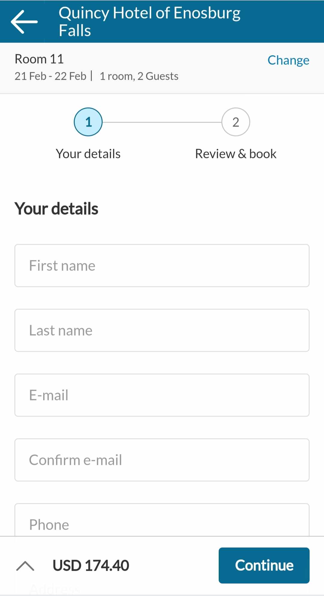 Keep your forms and processes as simple as possible for people on mobile. It should be clear and easy to select dates, choose preferences, view availability, and select rooms.