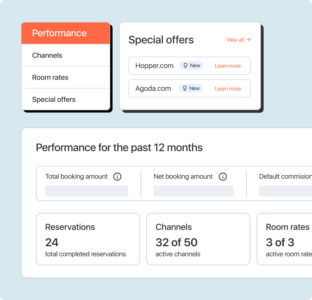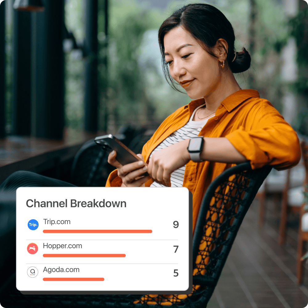 Stay in control from one centralised dashboard that includes your live channels, room rates and booking results.