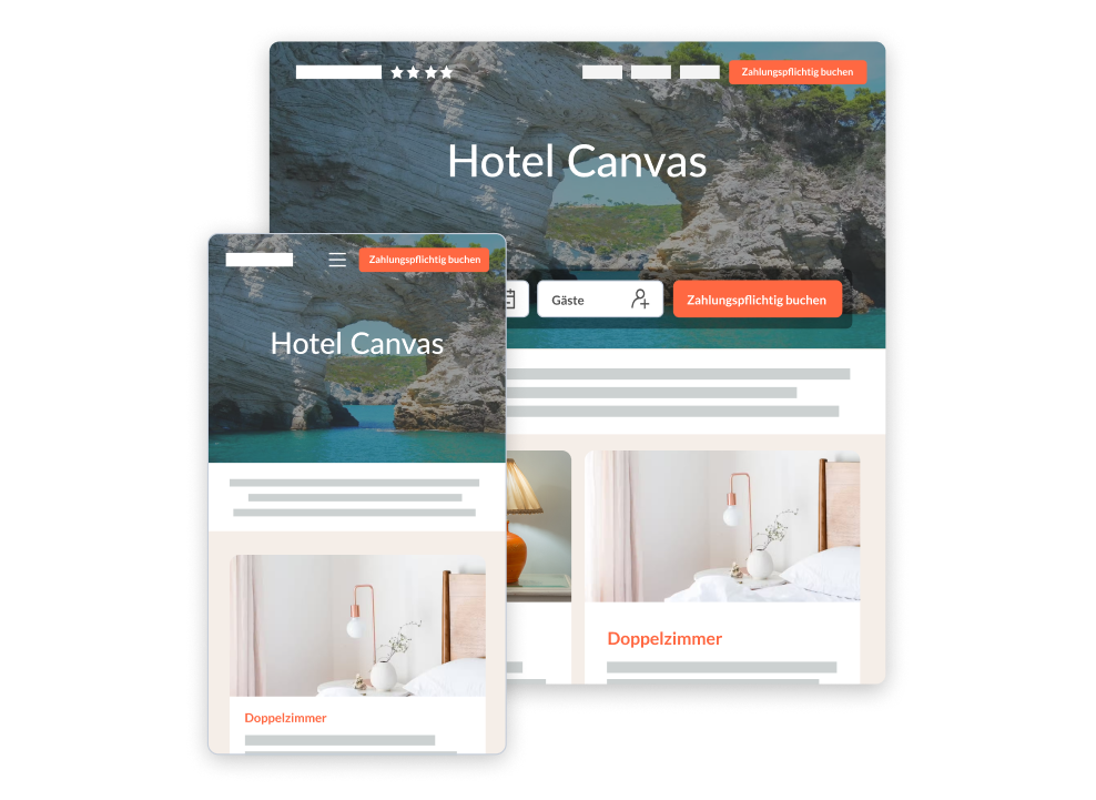 Möchten Sie einfach nur schnell und unkompliziert eine Website veröffentlichen? Kein Problem. Wir haben eine benutzerfreundliche, sofort einsatzbereite Vorlage für Websites, die Sie an Ihre Marke anpassen können, z. B. mit Fotos, Zimmerbeschreibungen und Stornierungsrichtlinien. Damit können Sie schnell eine Onlinepräsenz aufbauen. Oder Sie führen ein Upgrade auf eines unserer erweiterten Website-Designs mit individuell anpassbaren Funktionen durch, um Ihr Hotel und seine Angebote optimal zu präsentieren Sie haben die Wahl.