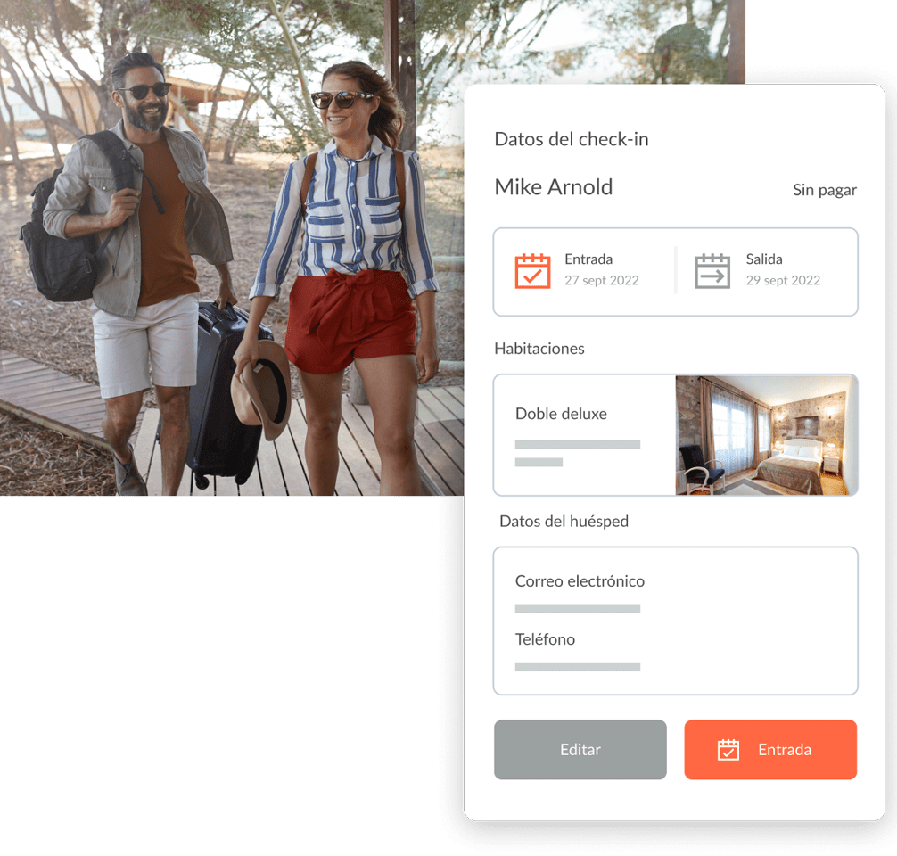 El software hotelero de registro de llegada te permite registrar la llegada (y la salida) de tus huéspedes a través de un sistema que se actualiza automáticamente con tu sistema de gestión hotelera.