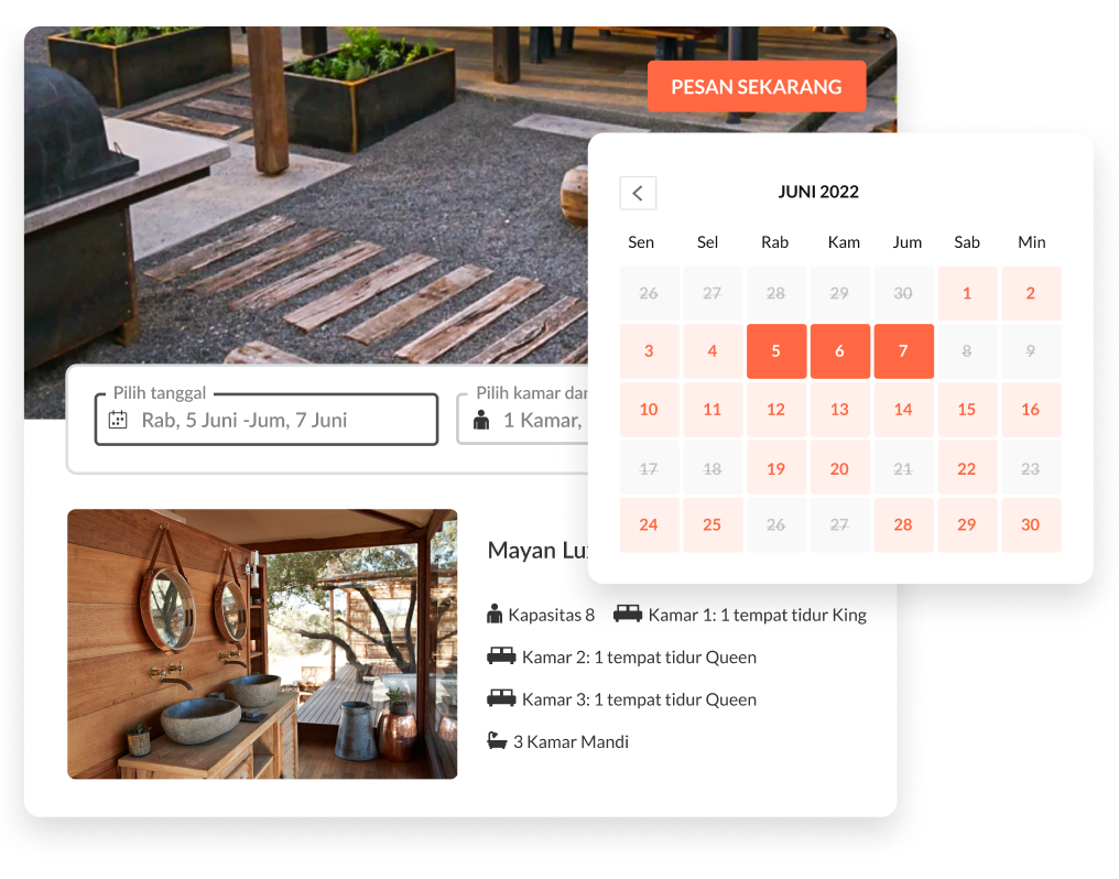 Anda dapat menerima pemesanan melalui mesin pemesanan di situs web hotel dan situs media sosial seperti Facebook dan Instagram. Anda juga dapat menjadikan mesin pemesanan sebagai bagian dari strategi pemasaran email, dan mengirimkan email khusus kepada calon tamu dengan tautan ke mesin pemesanan Anda, sehingga mereka dapat melakukan pemesanan langsung.