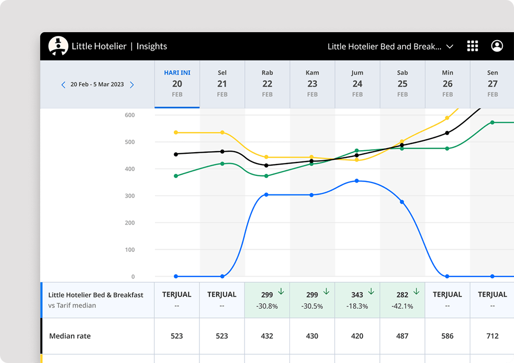 Dasbor dengan insight tentang cara menetapkan harga dan mempromosikan properti