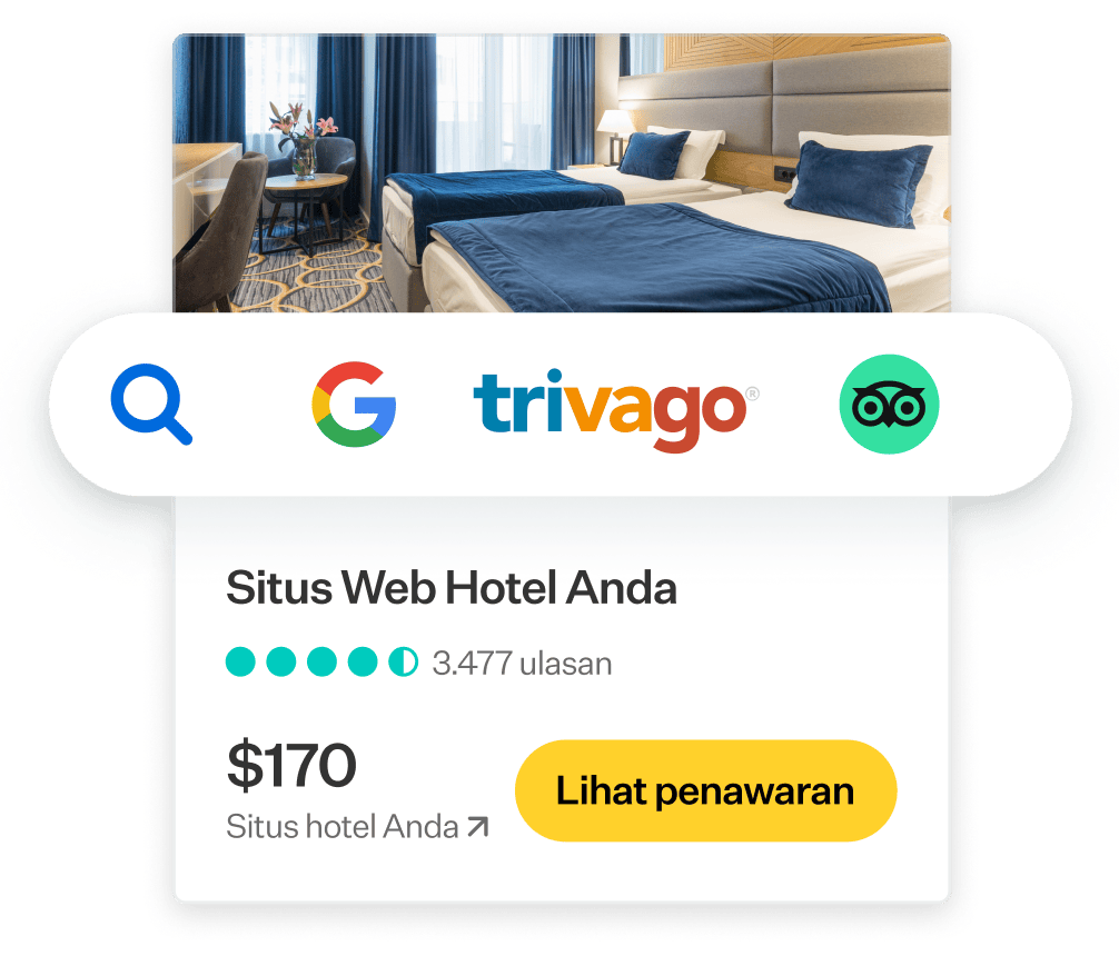 Layanan promosi properti di Google Hotel Ads, Trivago, dan TripAdvisor sehingga Anda dapat mengarahkan lebih banyak pemesanan langsung ke situs