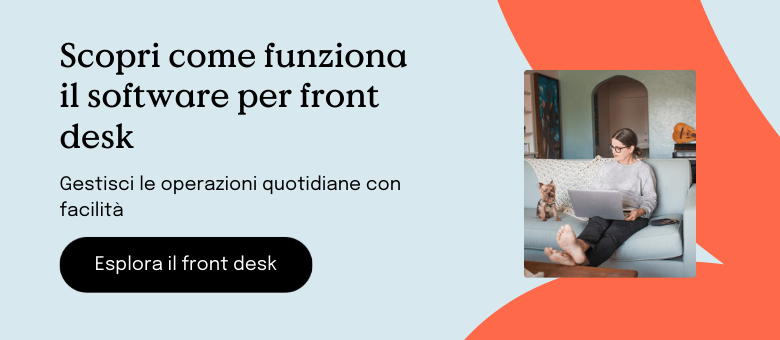 Idealmente, non dovresti utilizzare troppi software diversi per gestire il check-in e altri processi presso la tua struttura. Se puoi, scegli di fare tutto con un unico software oppure assicurati che i tuoi sistemi si integrino perfettamente tra di loro.