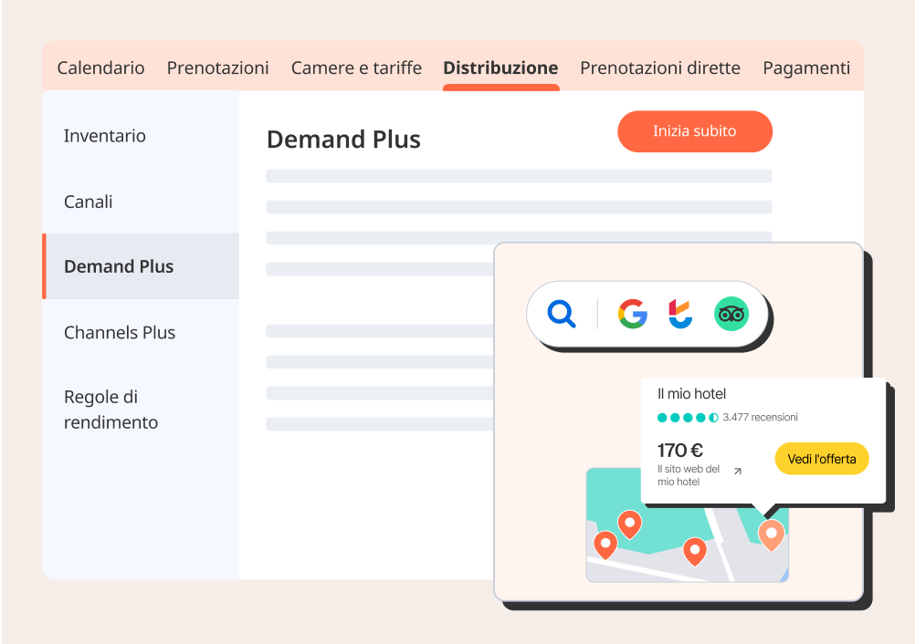 Gestisci tutti i canali di prenotazione (ad es. Booking.com) e l’inventario da un unico posto.