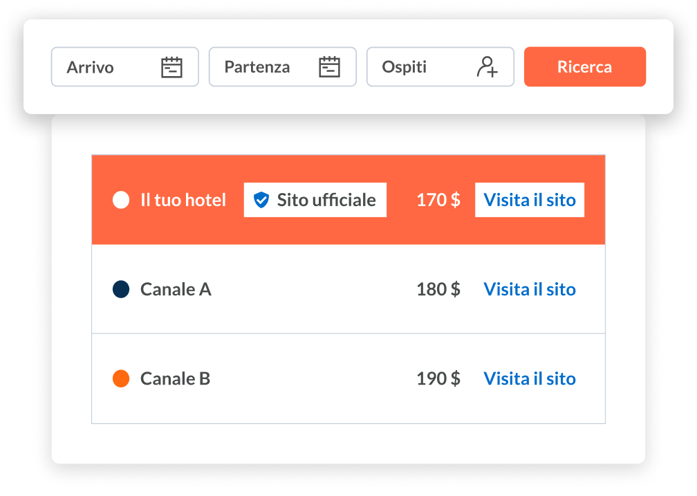 - Indirizza gli ospiti al tuo motore di prenotazione diretta per consentire loro di prenotare in tutta facilità.