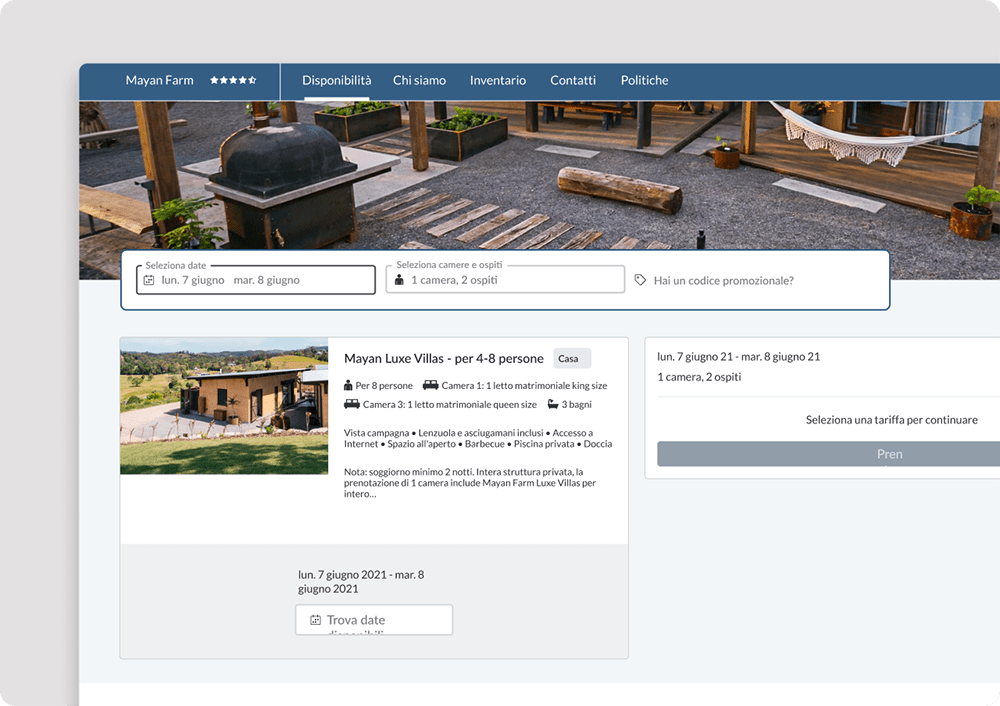 - Prenotazioni senza commissioni: Utilizza il nostro Costruttore di Siti Web e il Motore di Prenotazione Diretta.