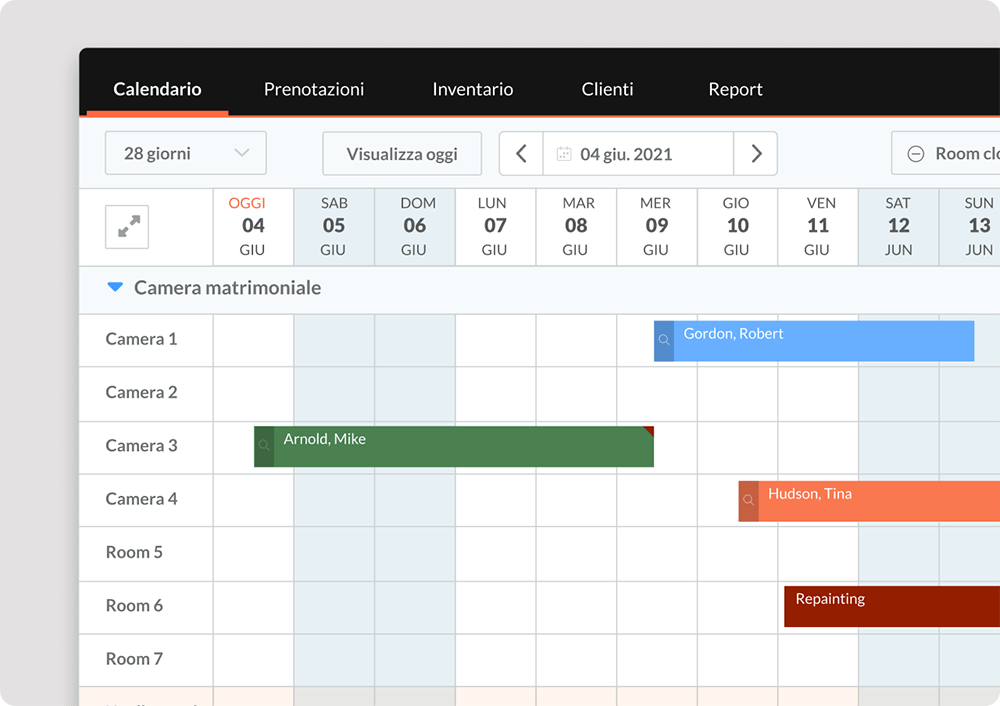 Il tuo strumento per gestire tutti i canali di prenotazione (ad es. booking.com) e la disponibilità da un unico calendario.