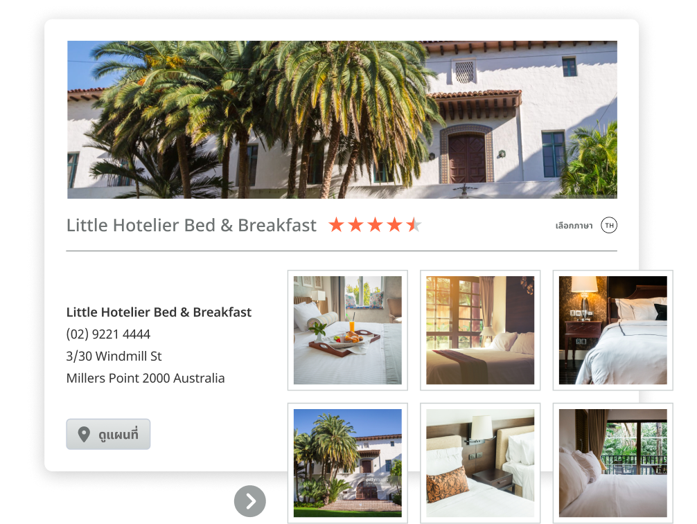 “จองง่ายและรวดเร็ว แม้จะดำเนินการในโทรศัพท์ขณะเดินทางก็ตาม Little Hotelier ช่วยเราได้จริงใน “การแมปโรงแรม” สำหรับการค้นหาด้วย GPS”